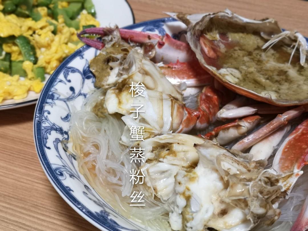 八月是梭子蟹大量上市的时候。盘子铺上泡软剪短的粉丝,加点水,再放上切块的梭子蟹,大火蒸六分钟,出锅后淋点薄盐生抽。好吃!...