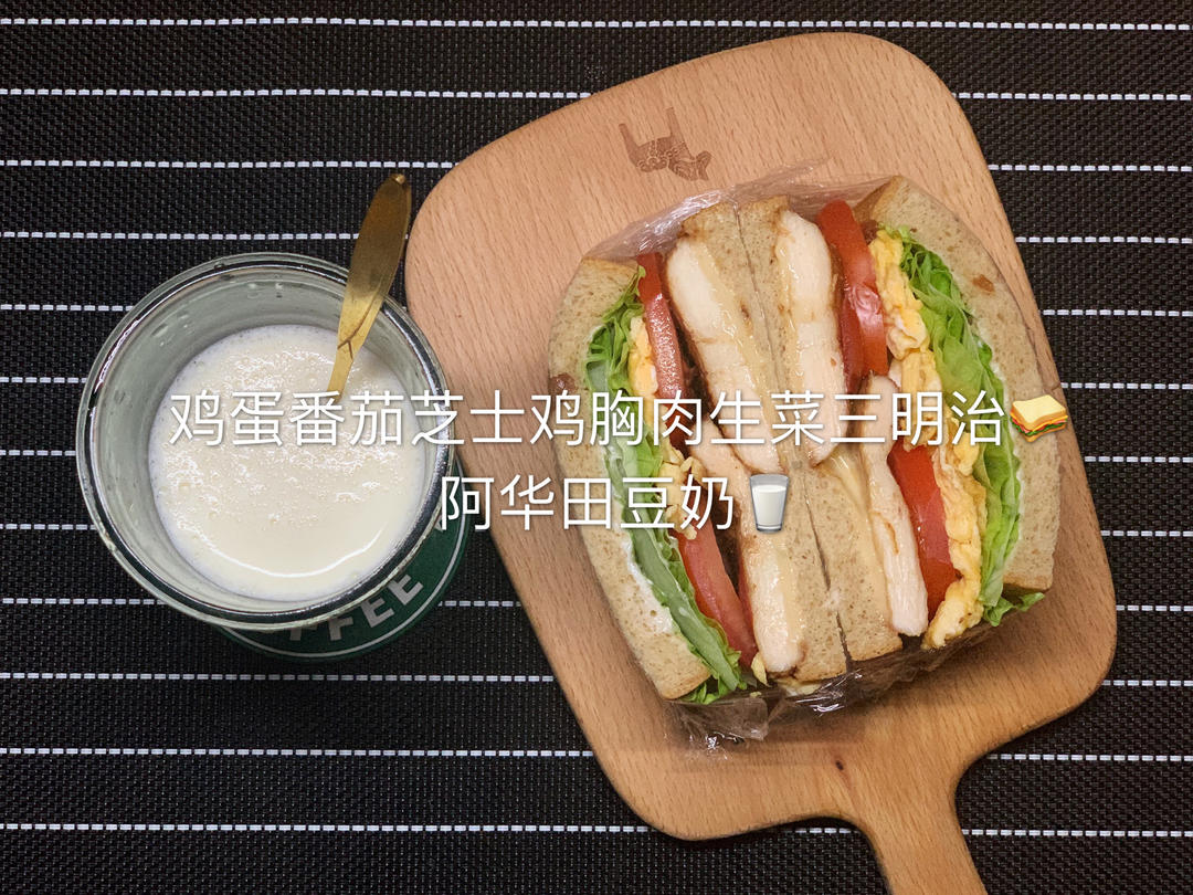 鸡蛋番茄芝士鸡胸肉生菜三明治🥪