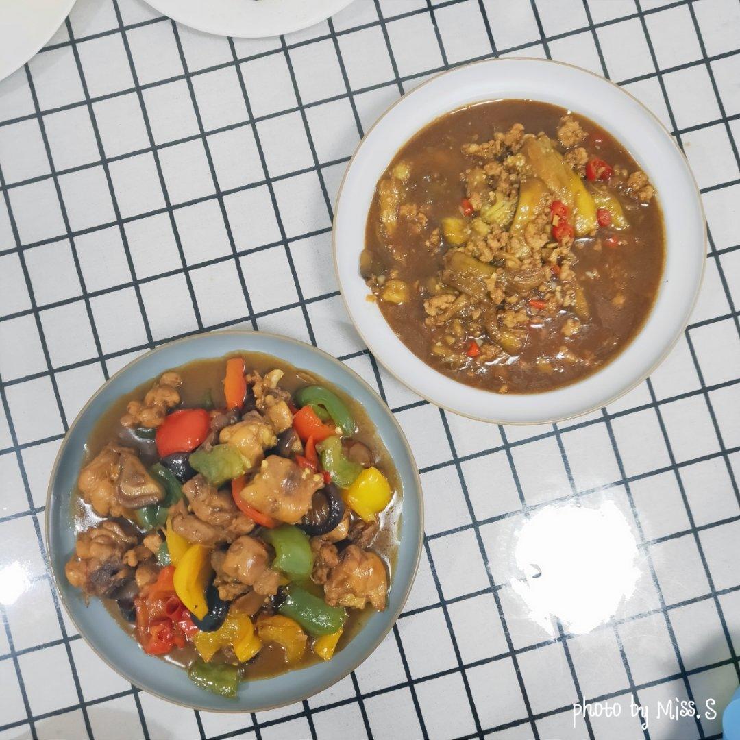 黄焖鸡米饭、肉沫茄子