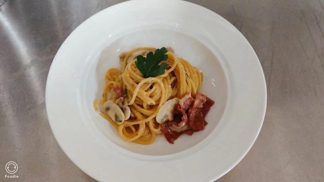 可加一颗鸡蛋🥚,使奶油包裹在意面🍝上,吃起来更香(老师教的)