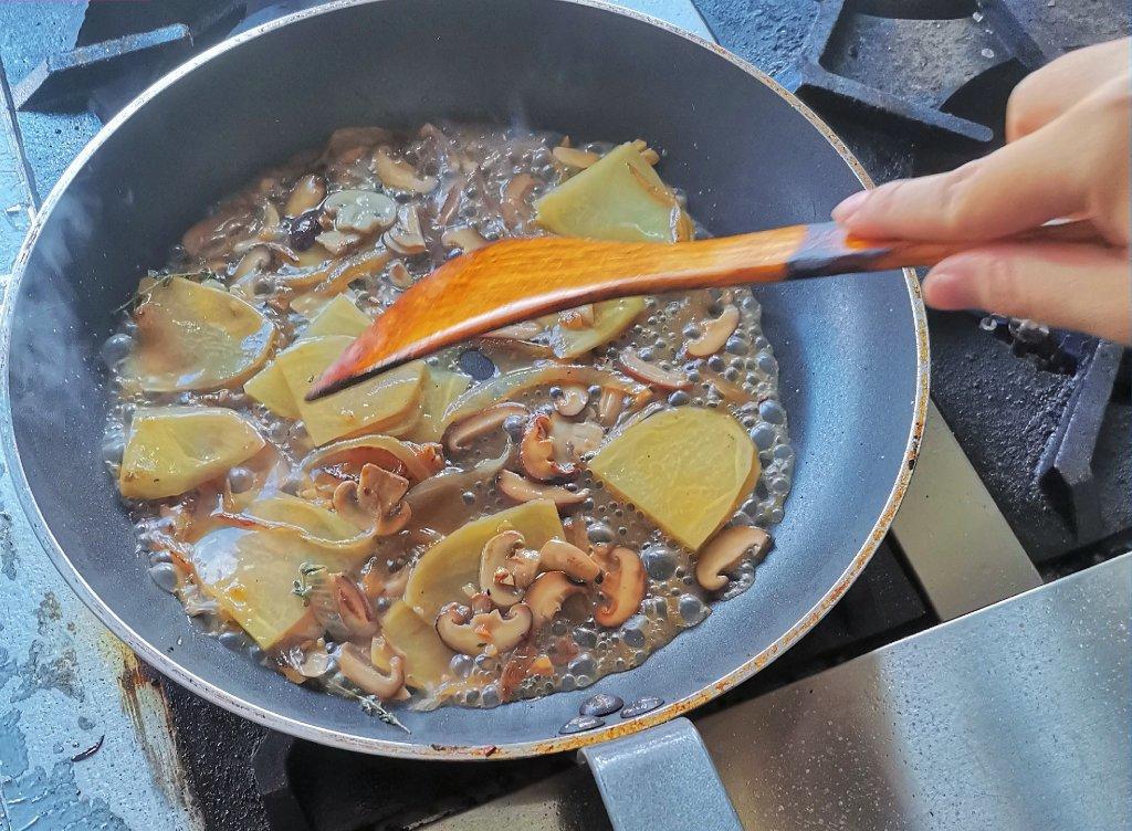材料:白口蘑200G、鲜冬菇100G、土豆80G、洋葱100G、奶油200ML
