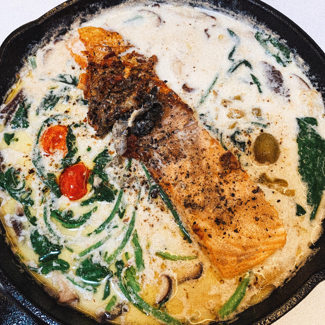 #托斯卡纳奶油烩三文鱼#