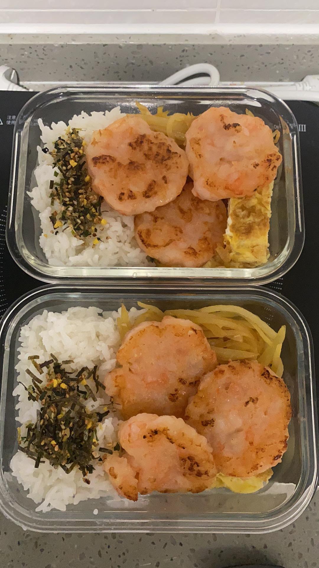 虾饼鸡蛋卷炒土豆丝便当
