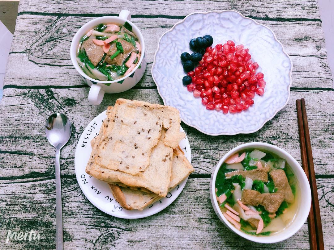 菠菜猪肝汤➕全麦亚麻籽吐司
