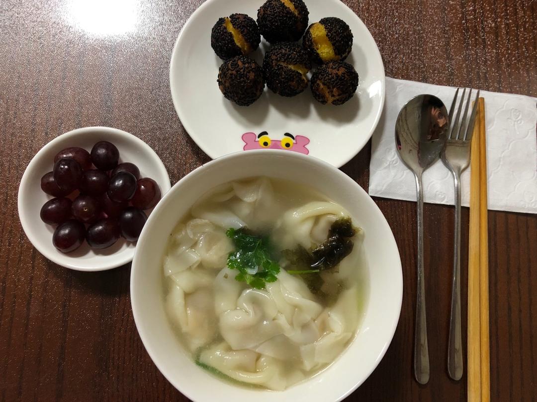 鲜肉小馄炖🥣黑芝麻麻团 🍇