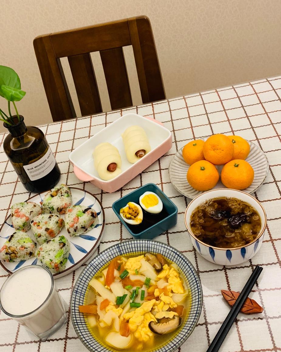 红枣木耳汤、三角饭团