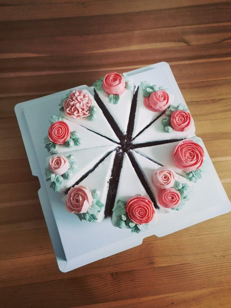 生日蛋糕~~蛋糕抹面后一定要冷藏或冷冻一段时间,不然切完容易东倒西歪。。