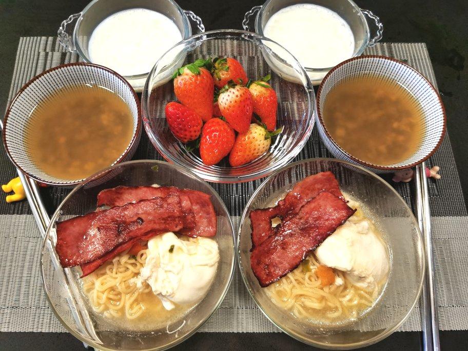 主食:方便面配煎牛肉培根