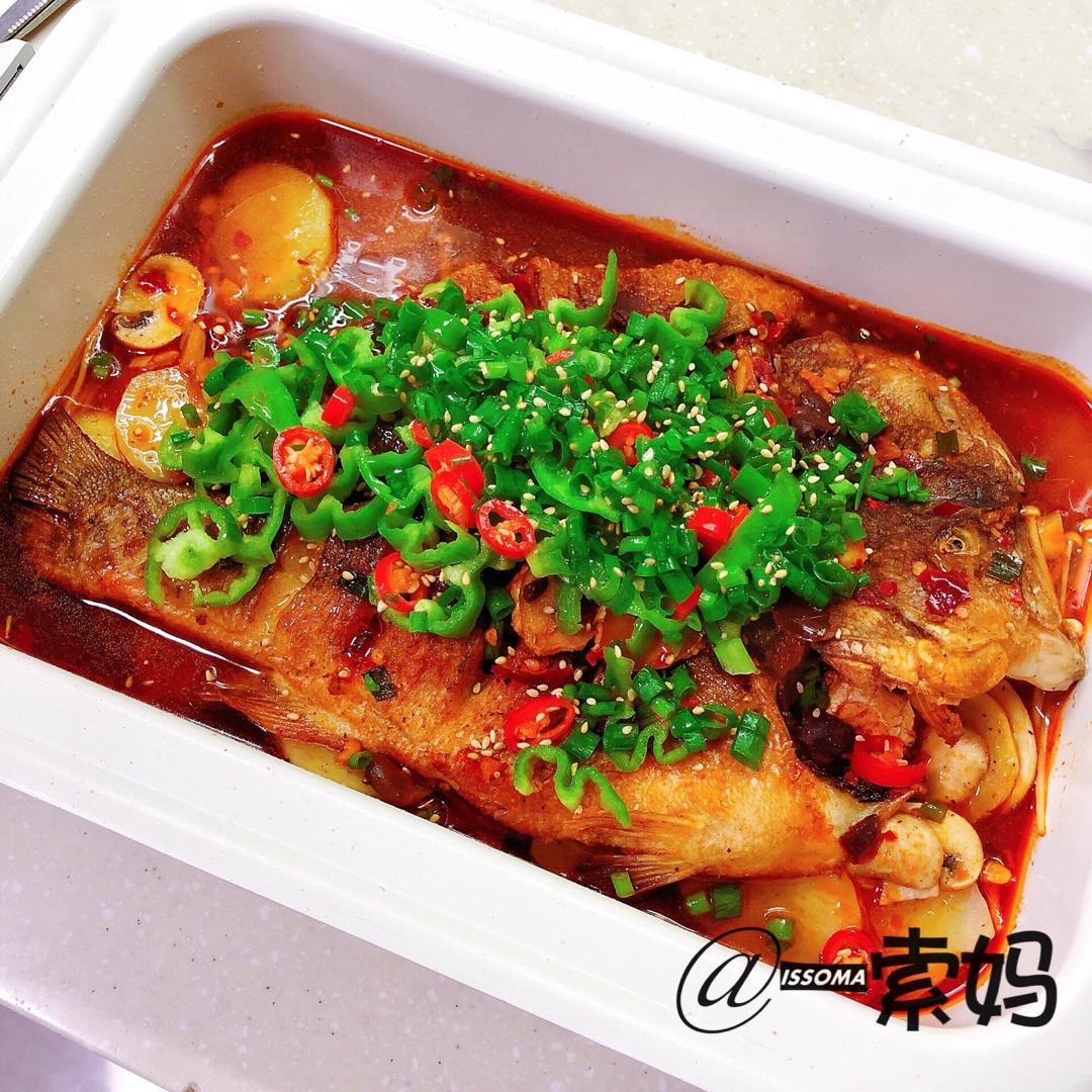 鲜活烤鱼🤤😘今天用了深锅,汤汁更多更好吃😁👍