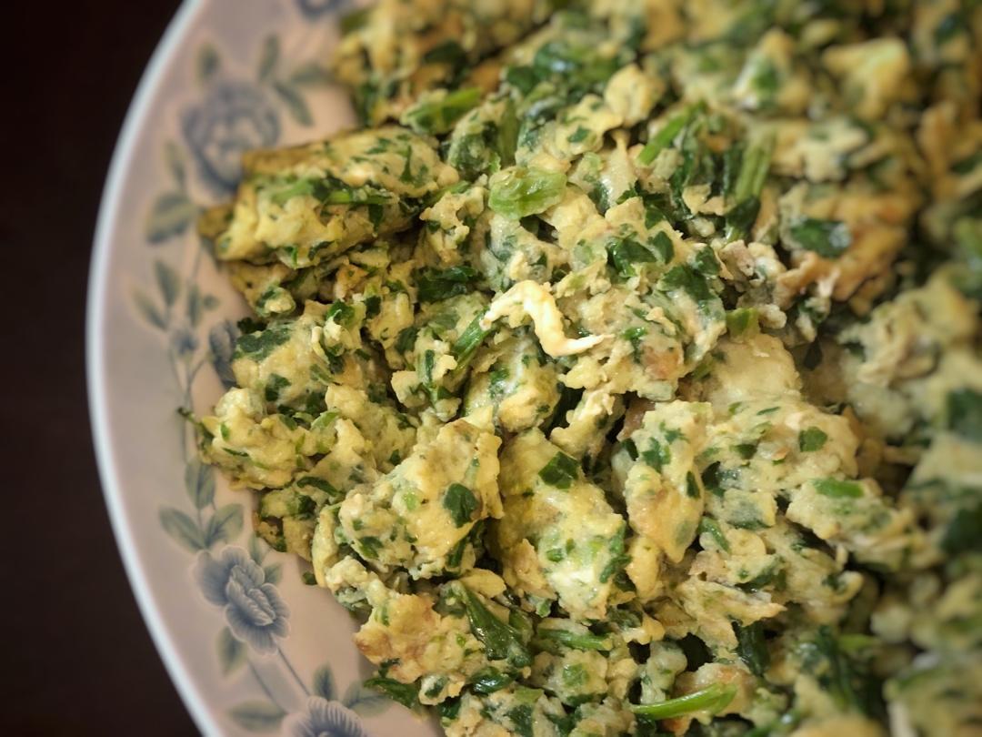 补传作品。美帝也不容易买到嫩的豌豆尖啊,大把的老茎,只能切碎摊鸡蛋了...