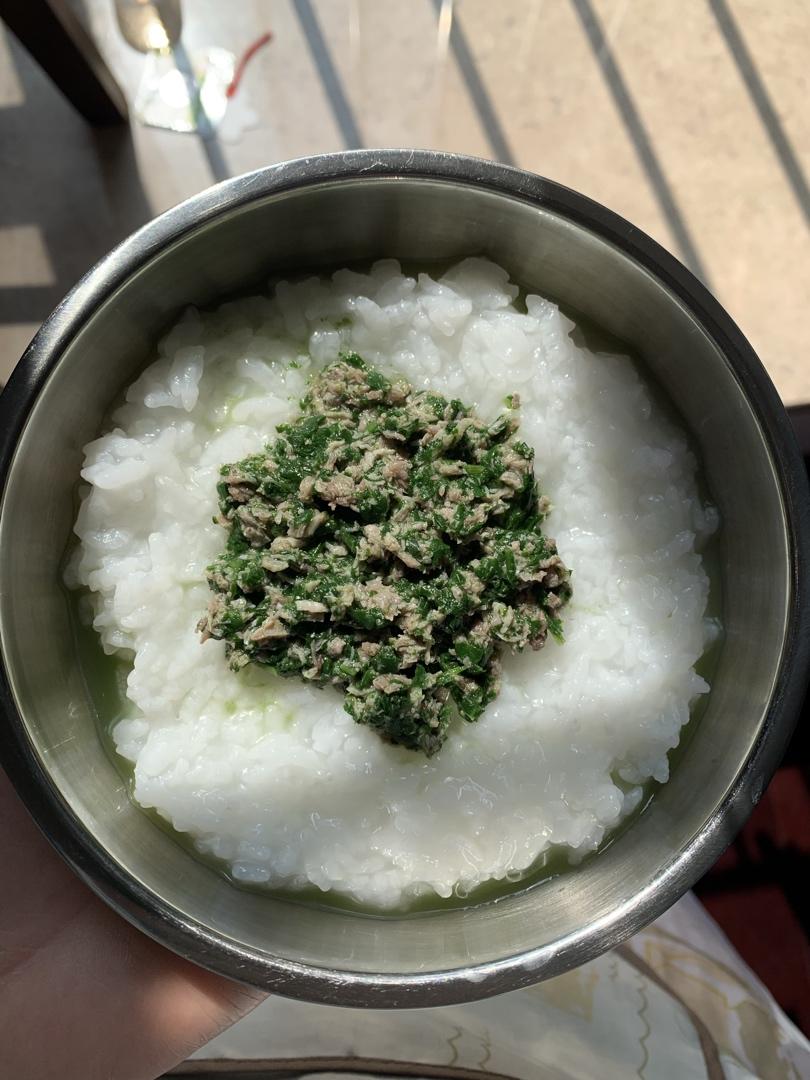 枸杞叶猪肉泥软米饭