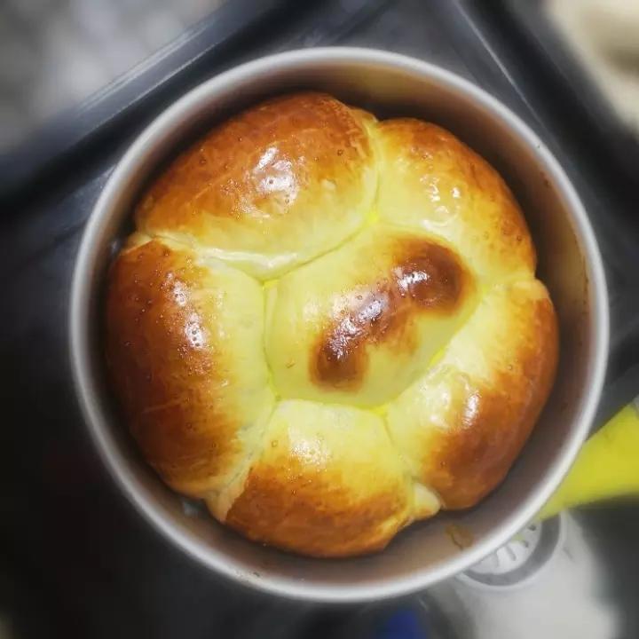 自制豆沙、3颗鸡蛋、3克酵母、50克黄油、170克左右牛奶、2克食盐、300克左右面包粉、50克白砂糖,上火160℃下火...