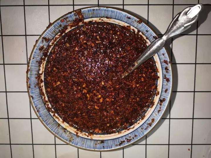 这张图有点凹糟😂辣椒面,五香粉,盐,花椒,蒜末,加热油,家里没有芝麻,就没放,不过不错。