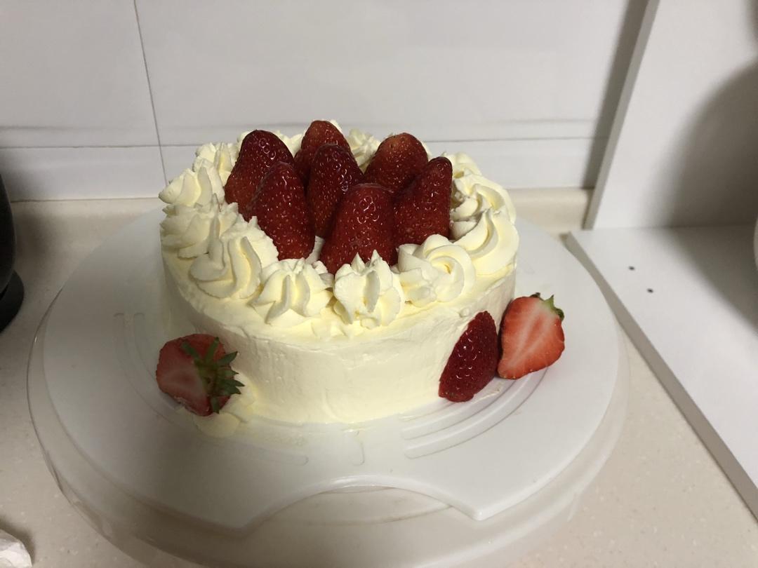 4寸的。草莓全部熬草莓酱了。草莓奶酪的量太多磨具偏小就堆起来了😂卖相是相当的粗矿。应该是淡奶油打发过头了。这么Heavy...