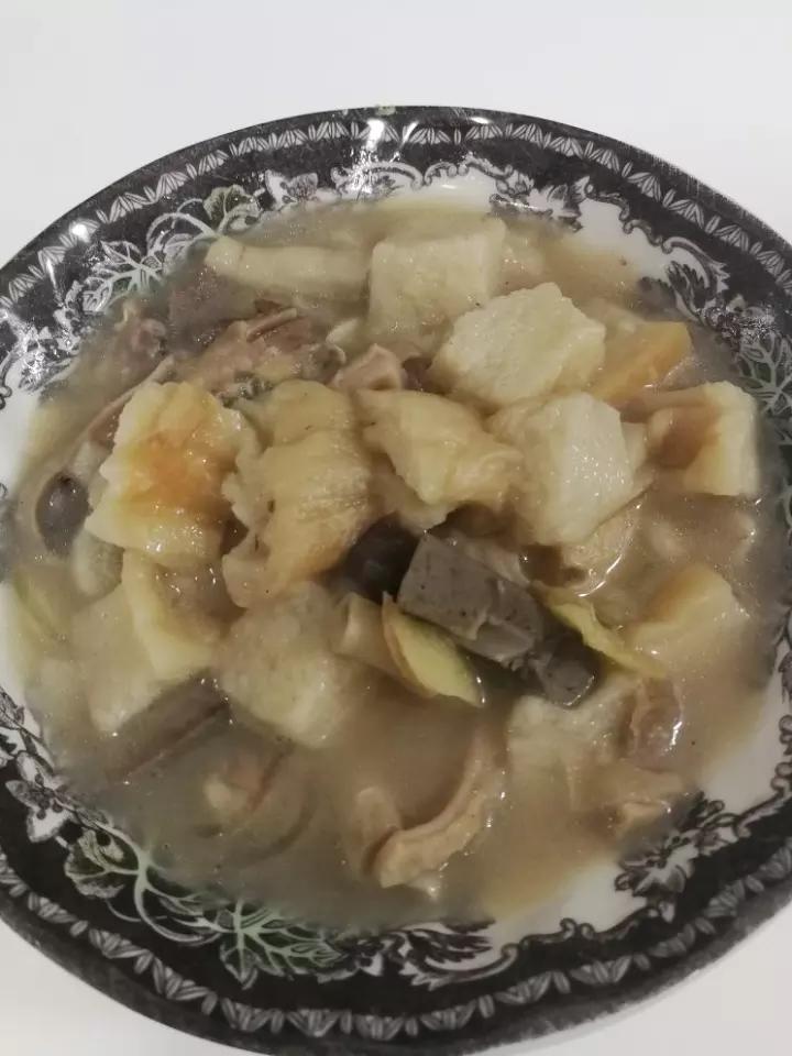 先焯一下羊杂,然后放佐料炒一下。倒入水,炖十分钟,最后放入粉丝和...