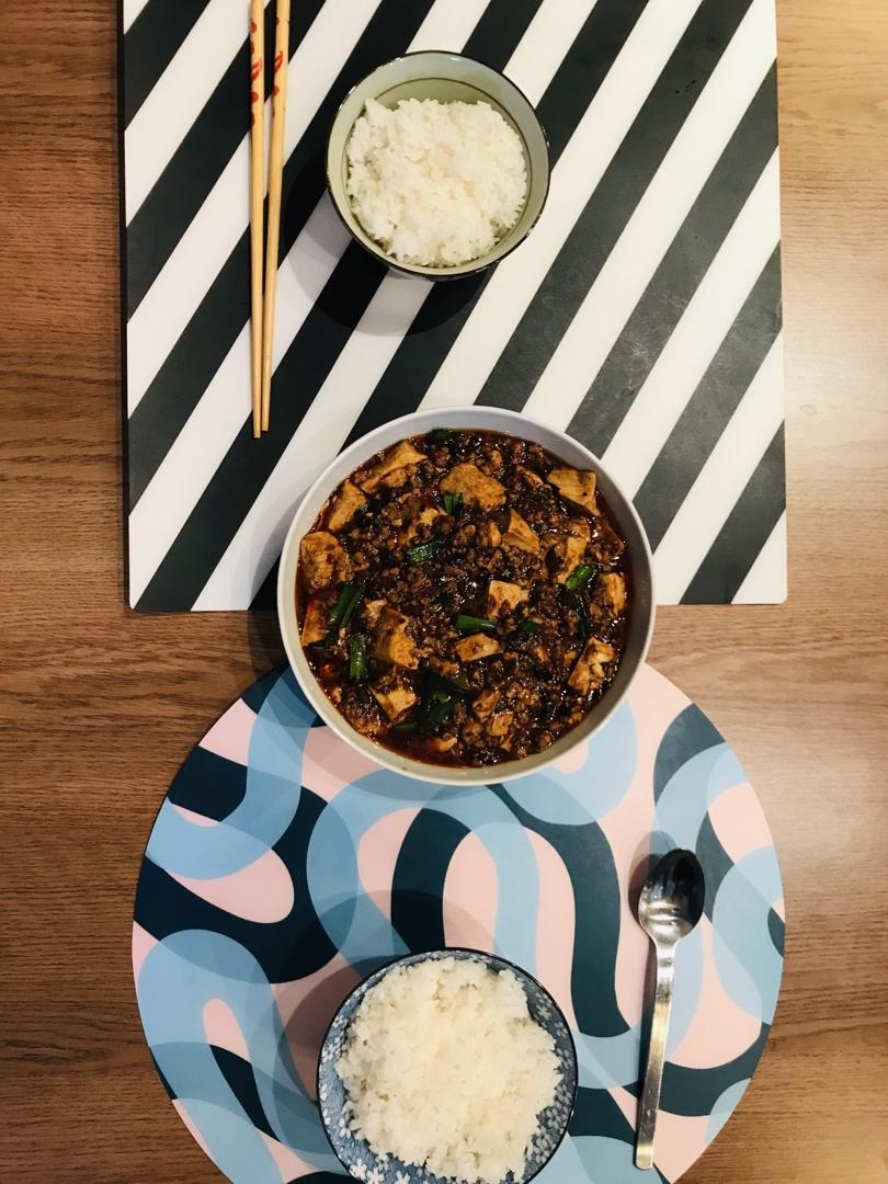 麻婆豆腐:嫩豆腐,郫县豆瓣,肉沫,菜籽油,花椒油,大蒜叶