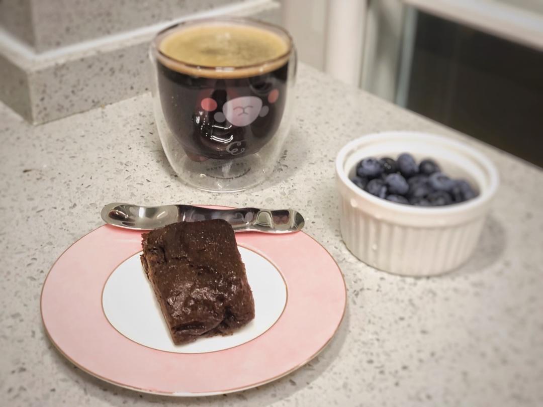 突然想起来早餐忘拍了 起床不饿 就简单地吃了一小碗米布丁 加了一勺可可蛋白粉 配一杯牛奶冷萃桂花乌龙