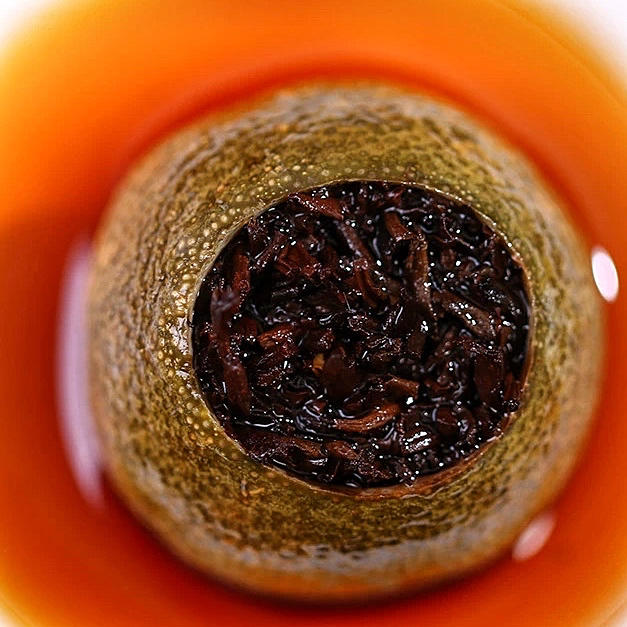 醇厚的熟普混合着淡淡的柑香,在炙热的沸水冲泡下逐渐浓郁,喝下后茶味渐渐褪去,口中余留的是清凉的柑橘香气。#找个理由多喝水...