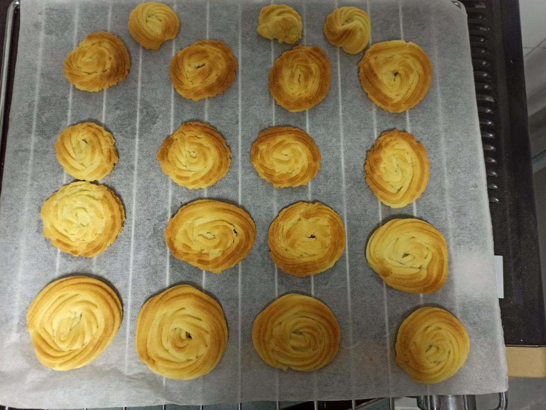 第一次做曲奇饼干 杏仁粉还没到 用奶粉代替了 确实没有那么酥 下次用杏仁粉再试试