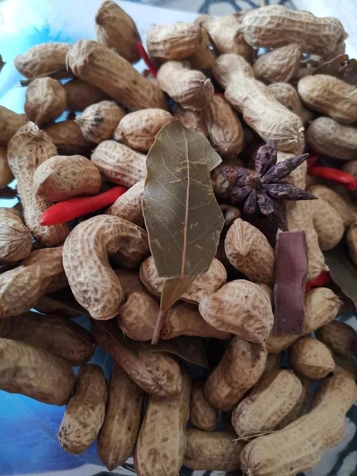 新鲜红皮花生,食盐,八角,花椒,红尖椒,桂皮,香叶。