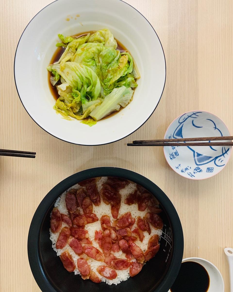 快手煲仔饭,白灼西生菜