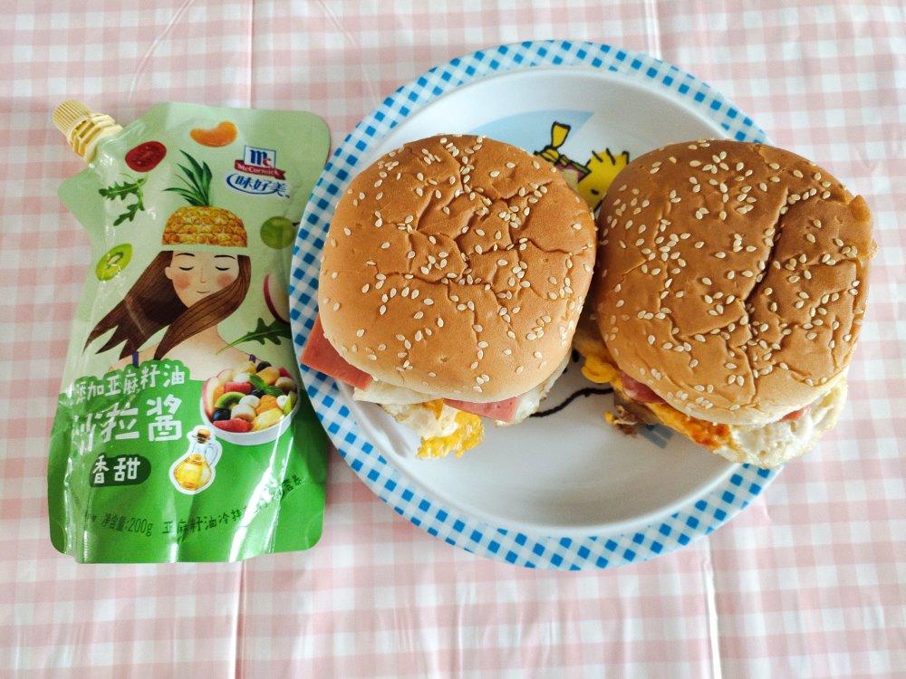 自制汉堡,简单快手,加点味好美沙拉酱,更加美味!