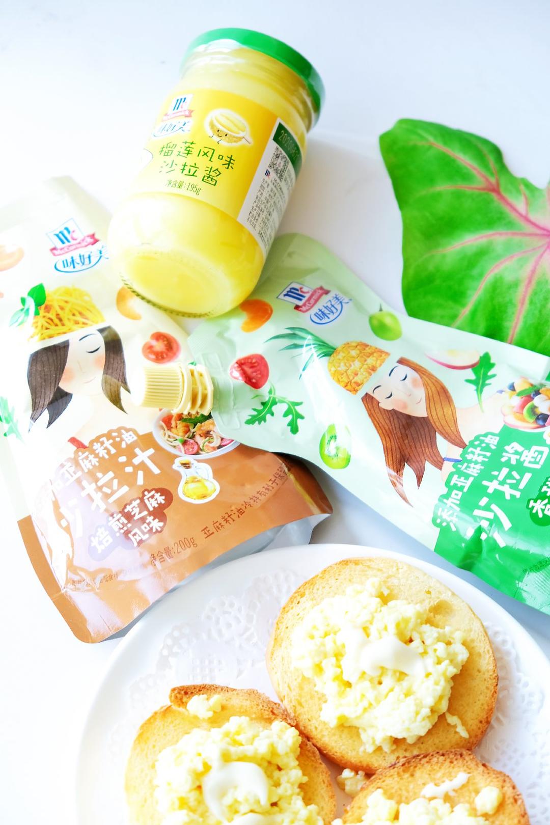 随便找个面包,烤5分钟。炒一个鸡蛋,拌上味好美沙拉酱。香甜、顺滑的口感和面包酥脆的味道非常的搭,非...