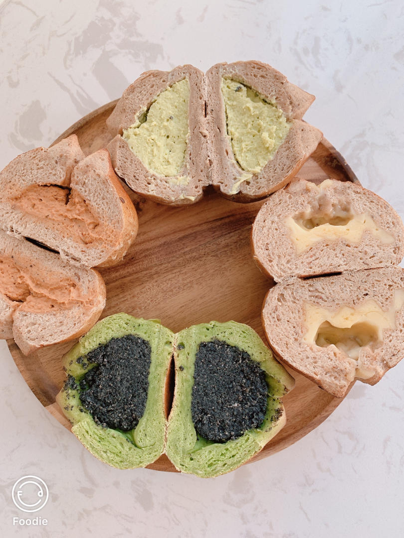 无敌好吃,换了个造型,南瓜馅不够咸蛋黄肉松馅来凑~