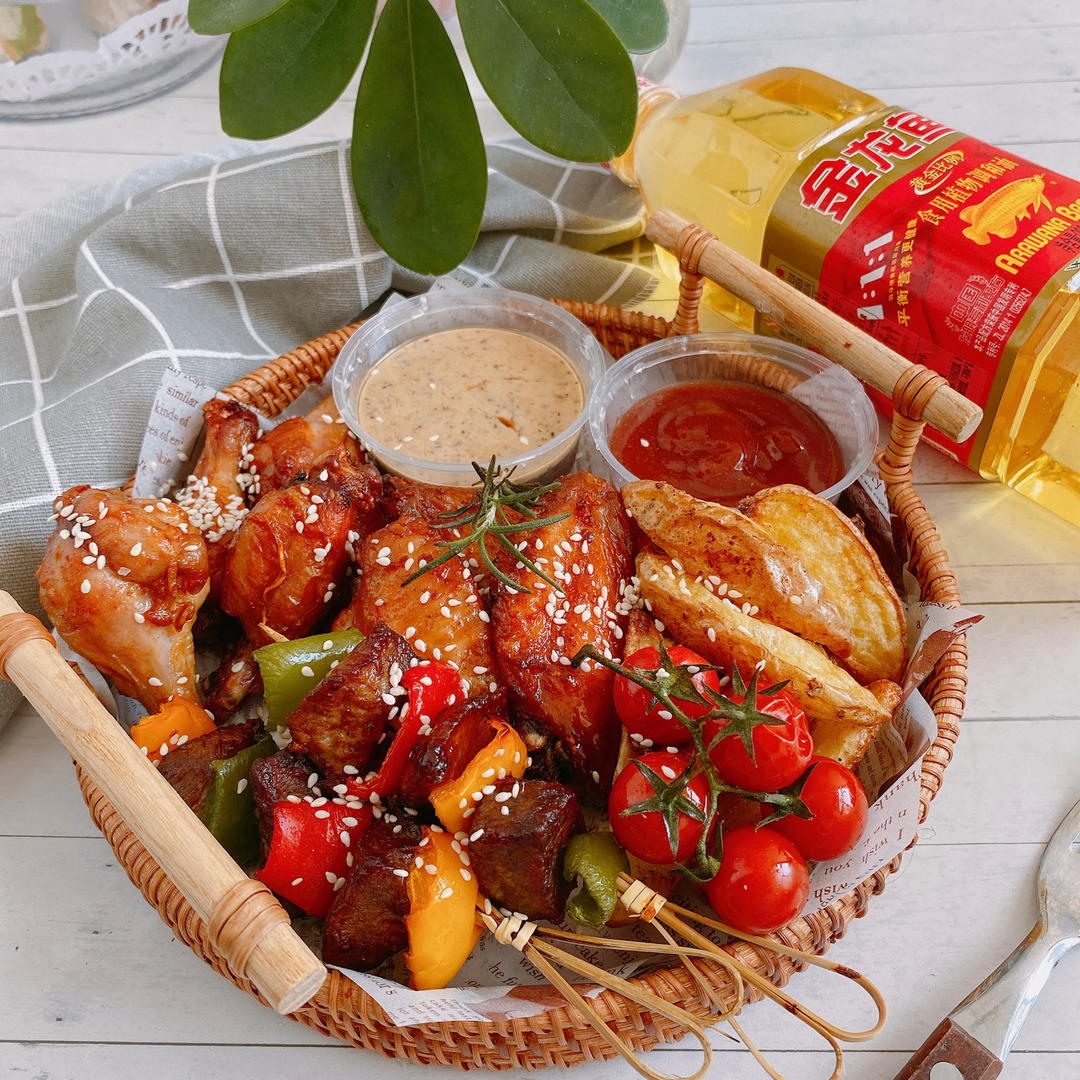 🌟空气炸锅小吃拼盘,能量满🈵才能slay全场😋金龙鱼1:1:1零反式脂肪调和油所代表的均衡营养与极致追求,传达健康的人生...