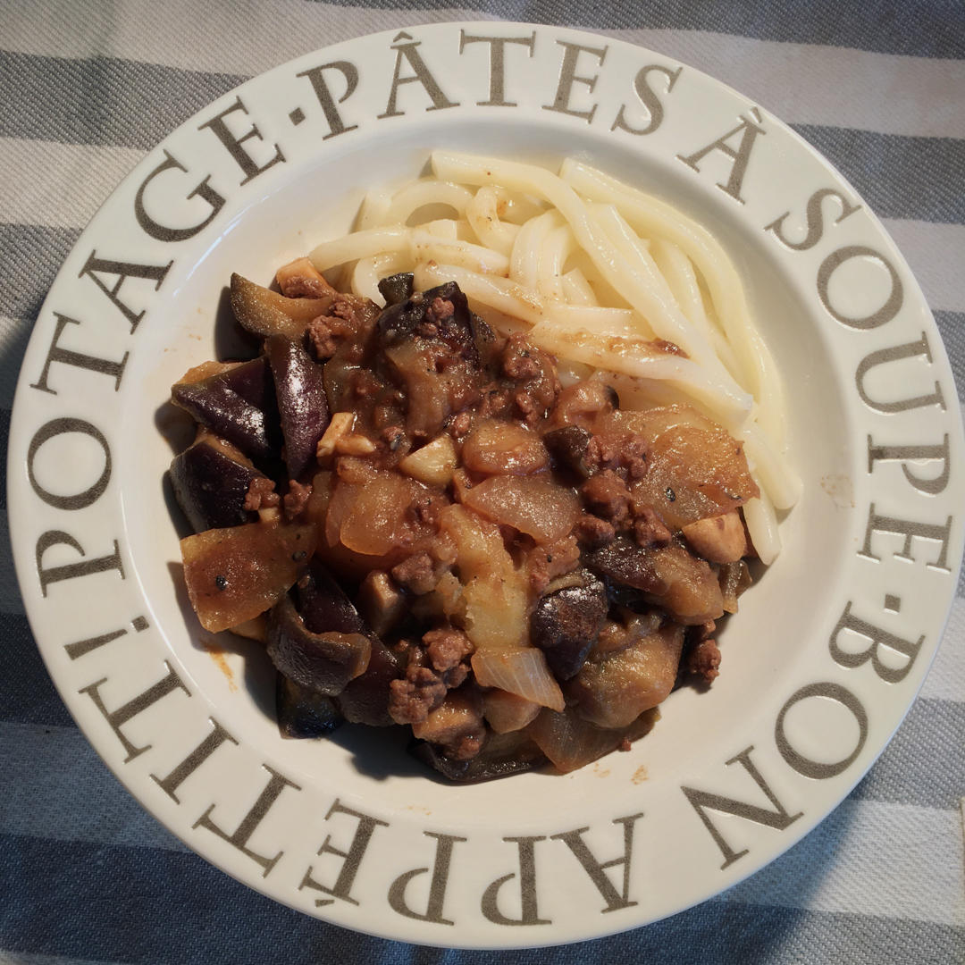 【牛肉糜洋葱🧅杏鲍菇烩🥔土豆茄子🍆拌乌冬面】(后三)