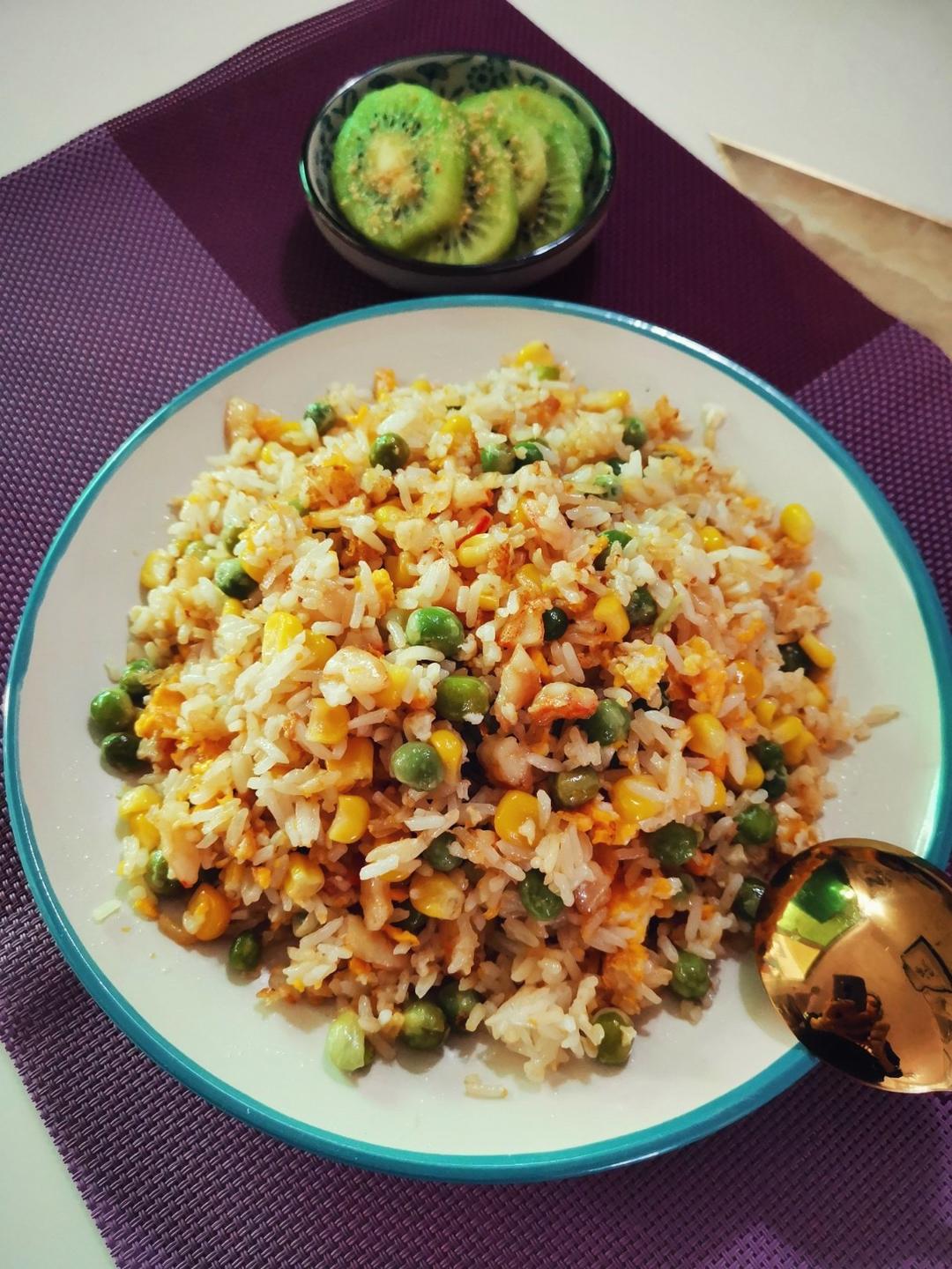 今天实在有点忙,简简单单,来份“虾🦐仁炒饭”