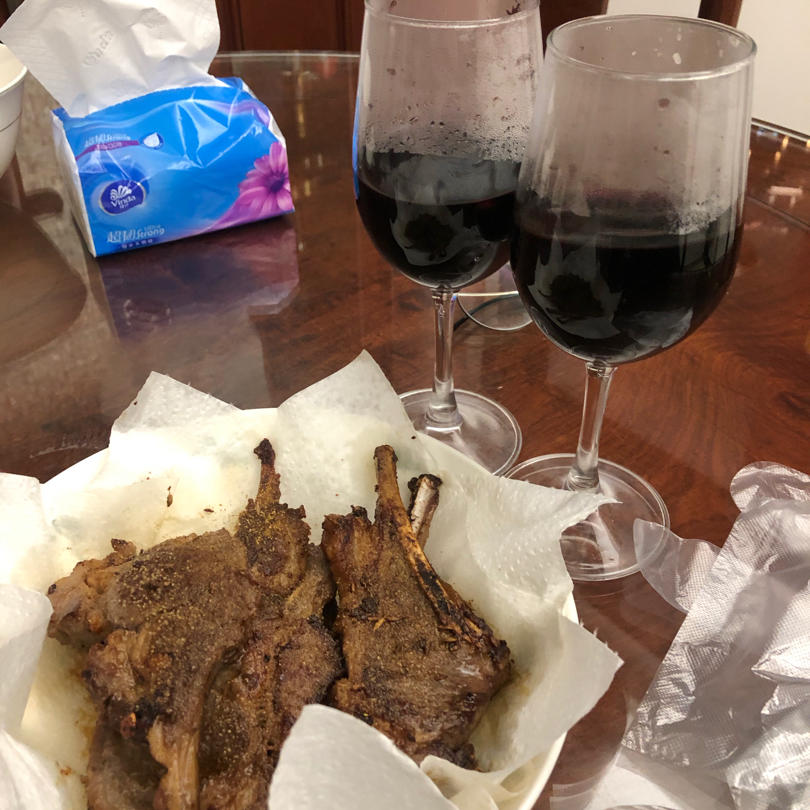 某天晚餐~羊排略韧