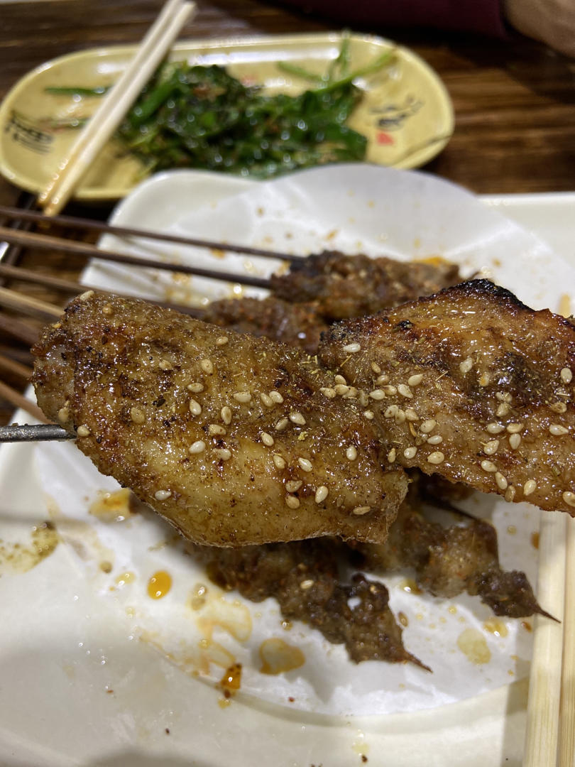 烤鸡翅、蒜蓉豆皮、羊肉串和烤韭菜都是必点的!!
