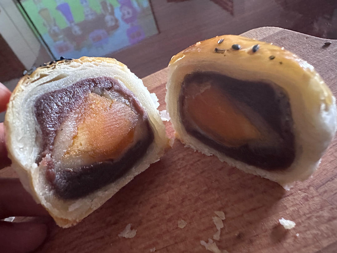 蛋黄酥,好久没做蛋黄酥了,蛋黄是自己腌的, 加了麻薯,宝贝...