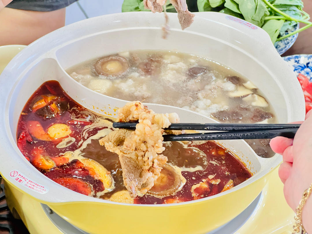 北鼎电磁炉//麻辣菌菇鸳鸯锅 下雪了最适合吃火锅了,北鼎电磁炉加热特别快。