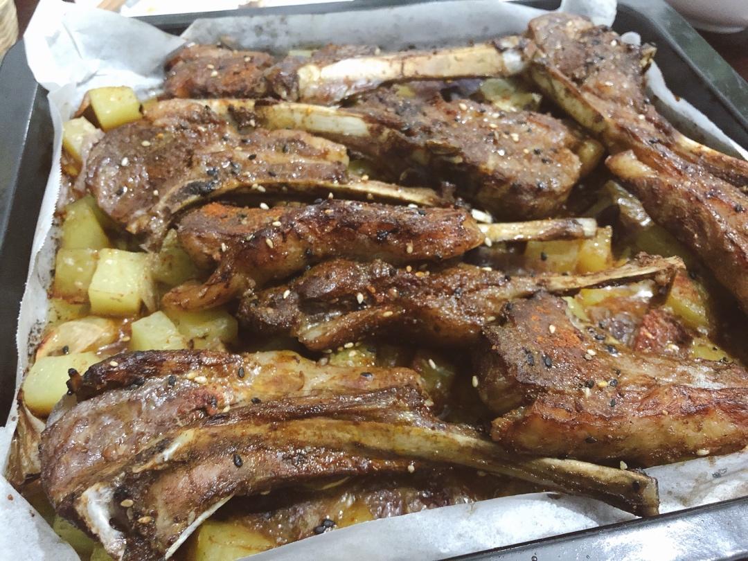 小羊排这么有西餐感的食材,被我烤成了北方大排档风味的大块羊肉。