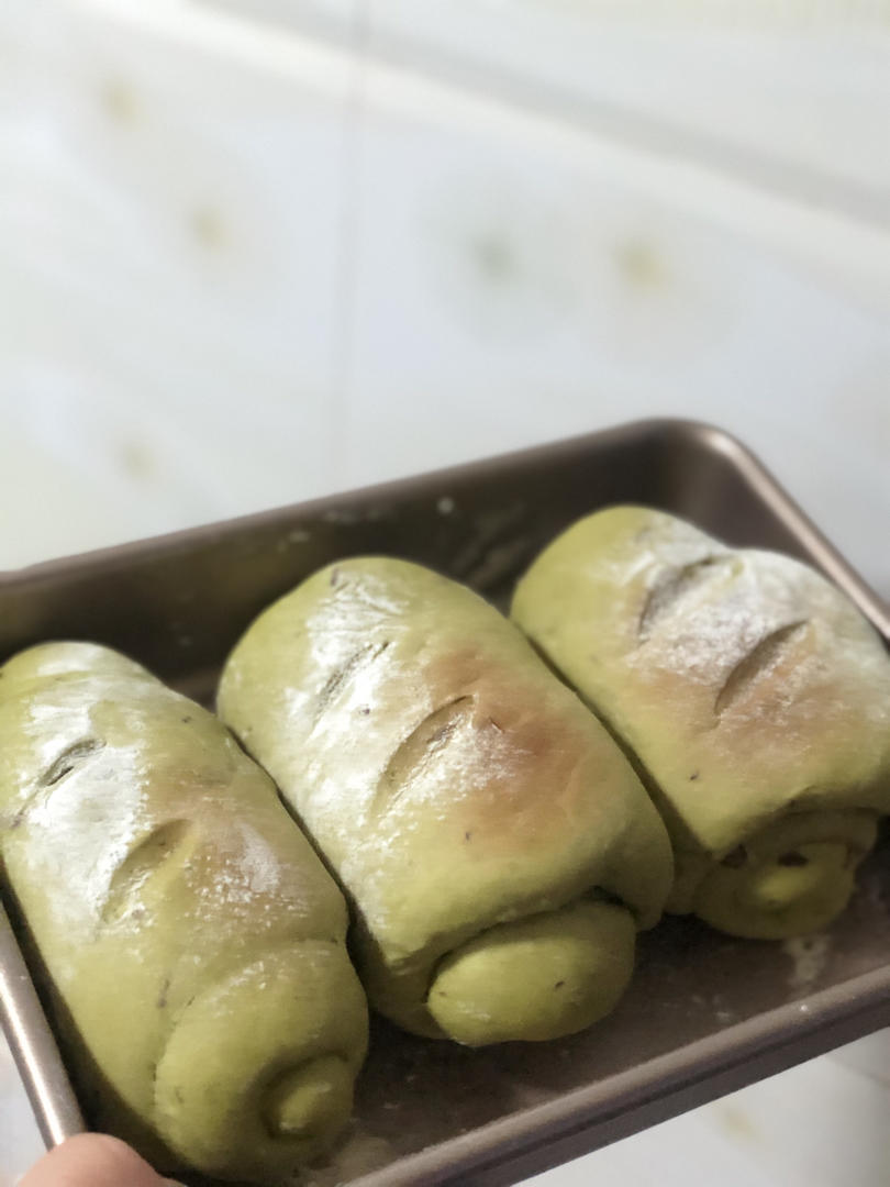 原配方量做成了两种口味,糖减到45g还是有点偏甜,抹茶粉加了差不多7g太多了有点苦,低粉90g。原味低粉加的80g,烤箱...