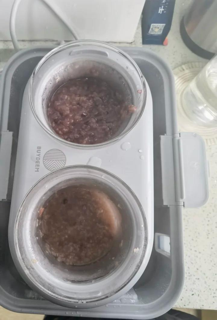 用北鼎蒸炖锅做的黑米大米小米粥和红豆大米小米粥,前一天晚上预约好,第二天早餐妥妥的.