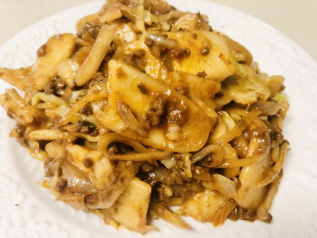 配菜是牛肉末,洋葱,包包菜!