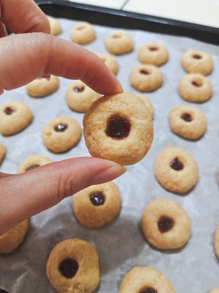 孩子点名要吃带果酱的小饼干 ,没有糖粉,用砂糖做的,感觉火候欠了,味道还行吧!