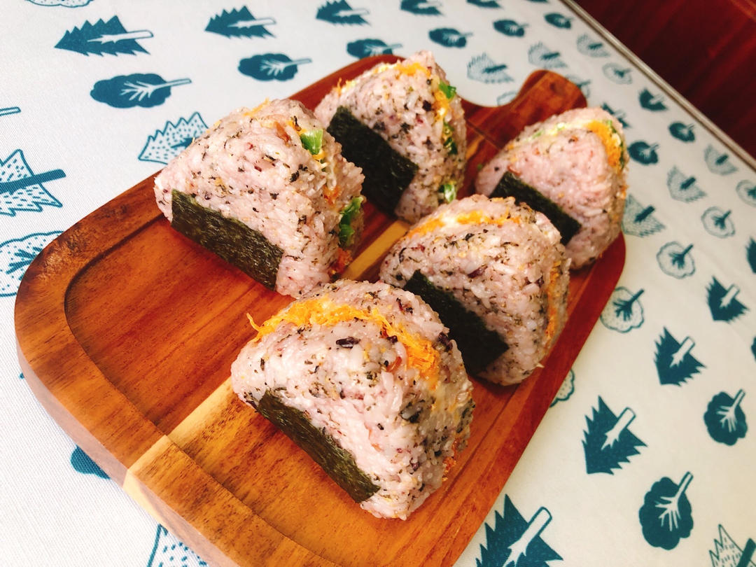 海藻肉松饭团、肉松蛋黄饭团