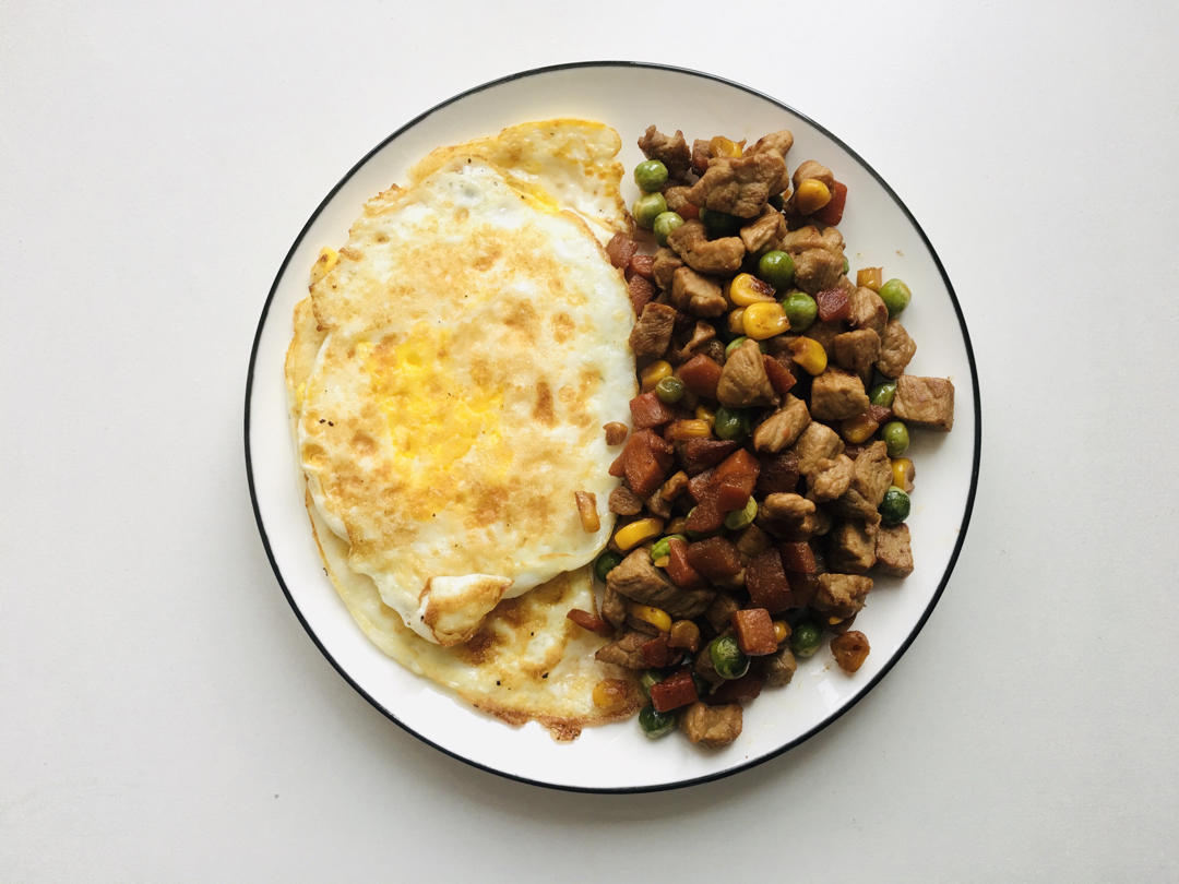 煎蛋、杂菜炒肉