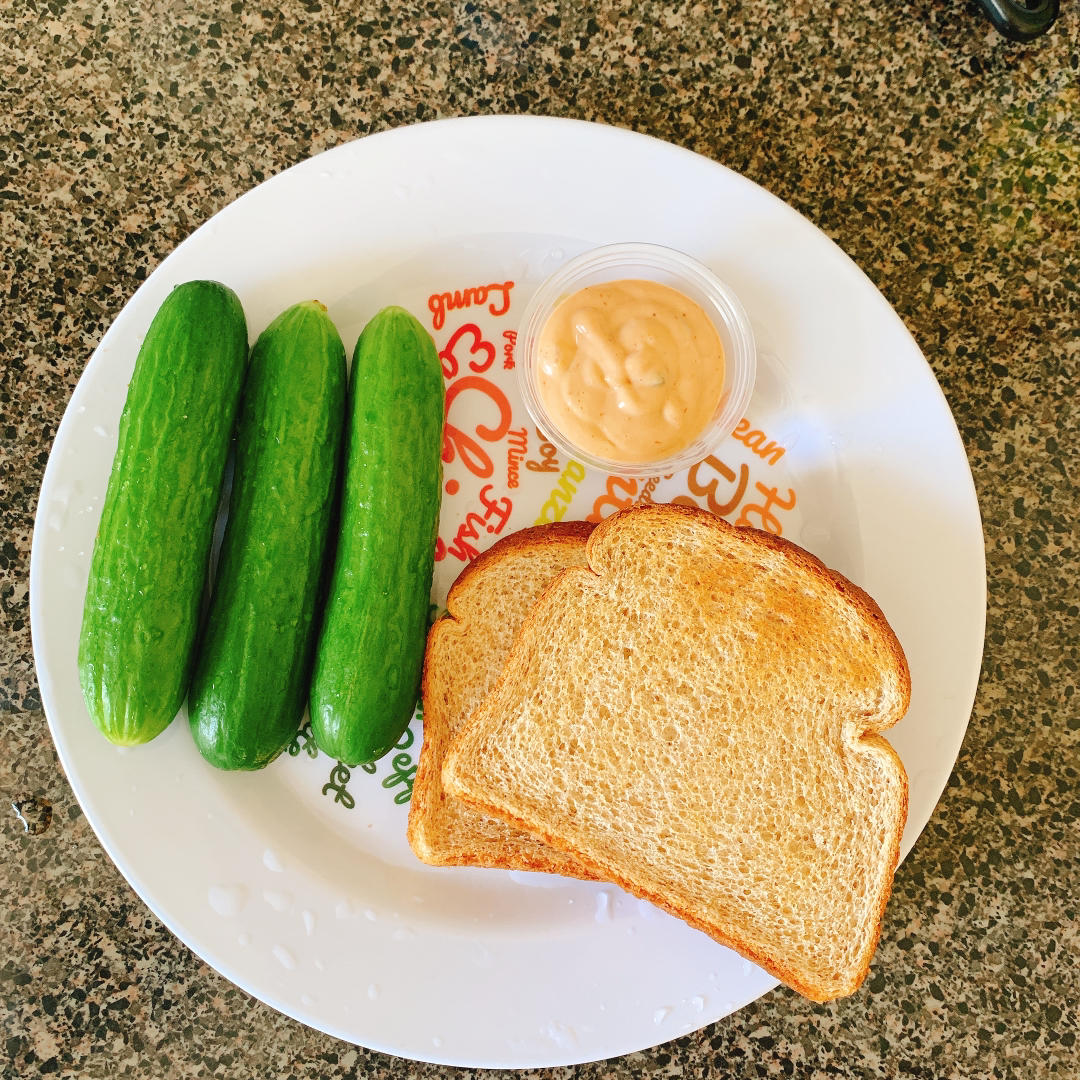 微波鸡胸肉➕烤面包➕小黄瓜