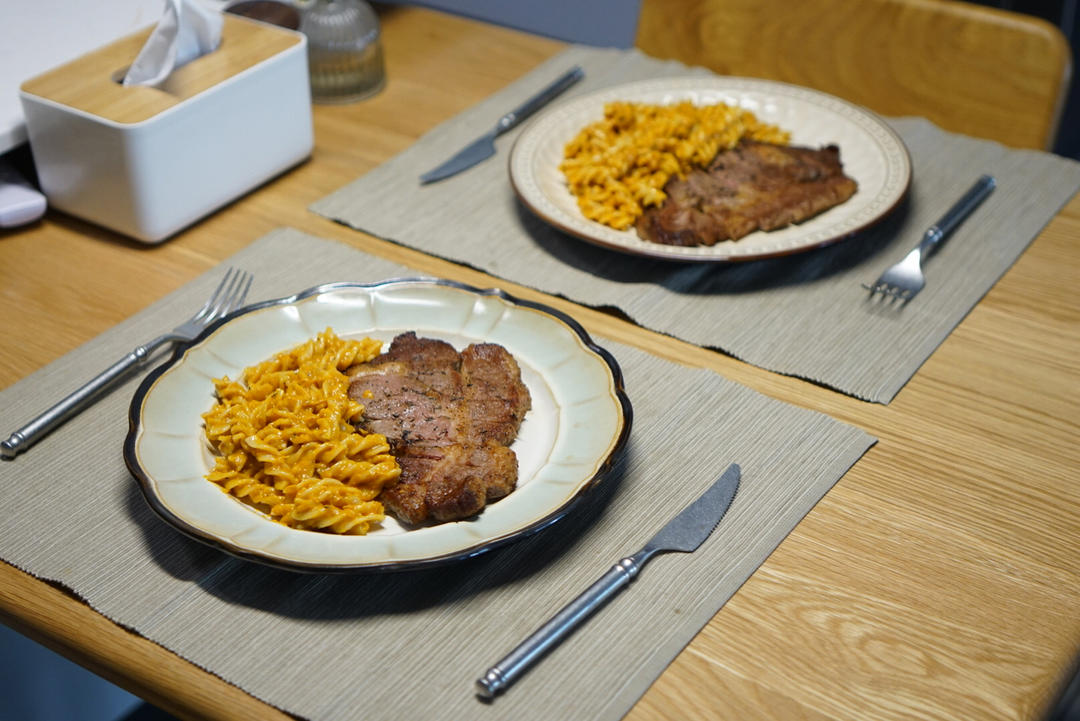 南瓜乳酪意面配肉眼牛排,一个字,绝~