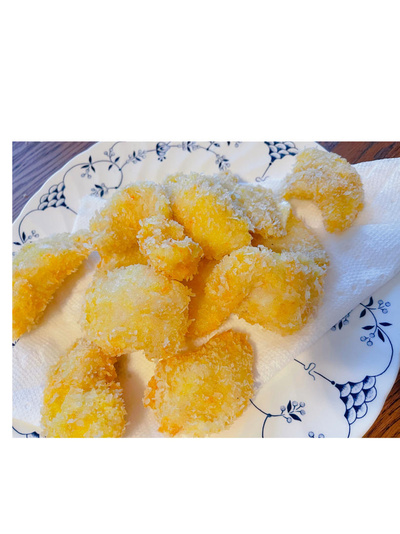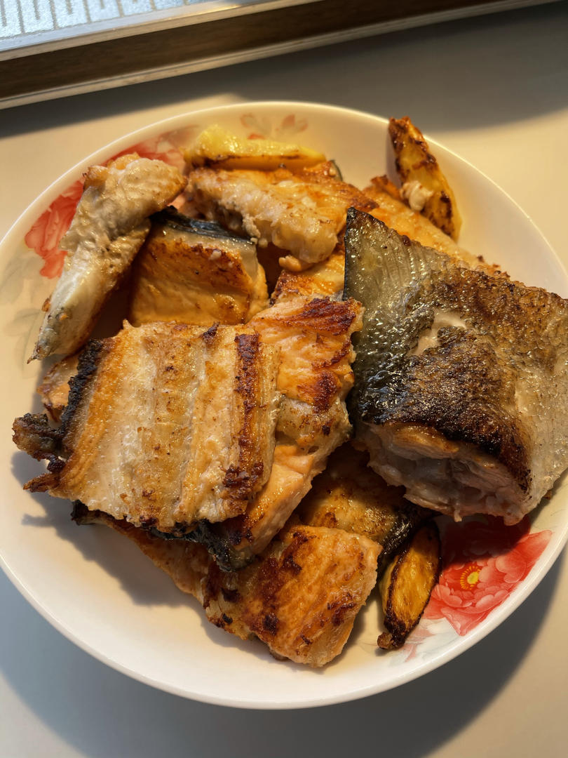 鱼排。鱼块切小了,不过小的也不错。好吃。我配了点塔塔酱,下次可以调淡点。