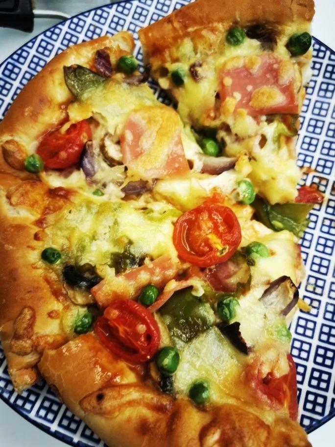 培根火腿披萨配南瓜山药银耳羹