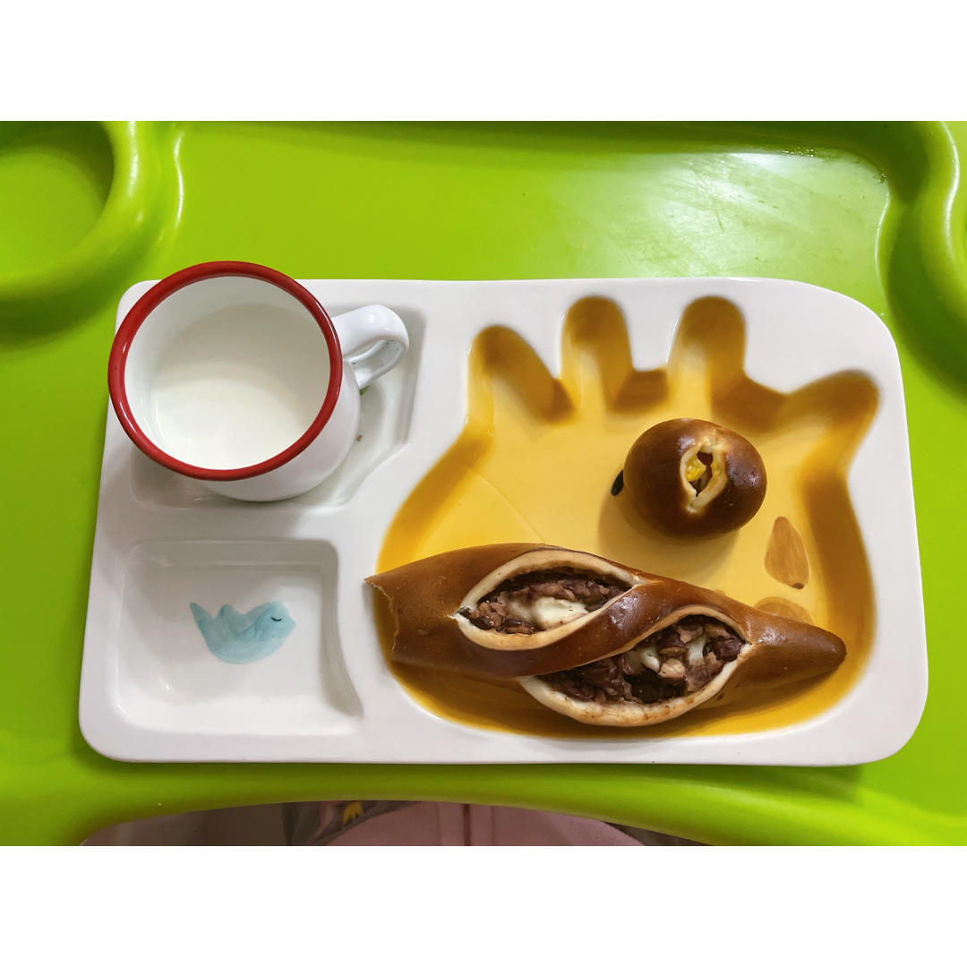 早餐 碱水面包 牛奶
