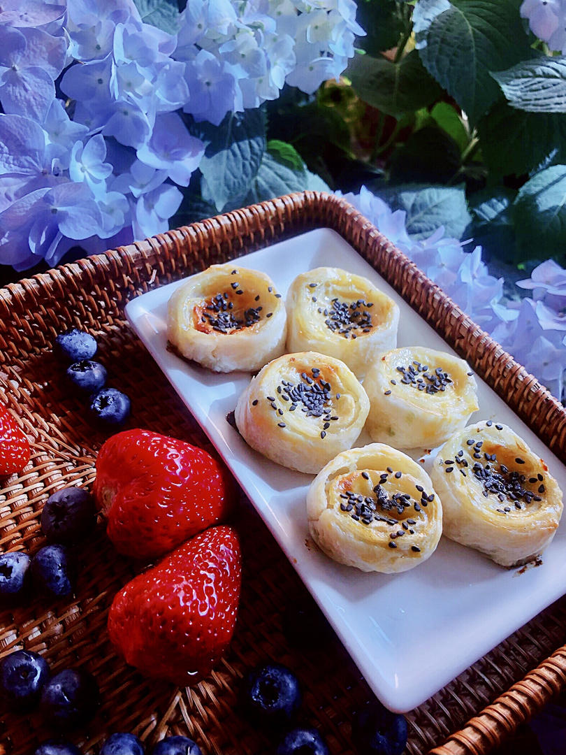 又来交作业了,额外放了奶油奶酪20g,效果非常好 ,第一次盖子烤,上下都165度烤30分钟!