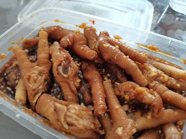 浸泡完鸡爪后捞出,用料汁泡黄瓜和香菜