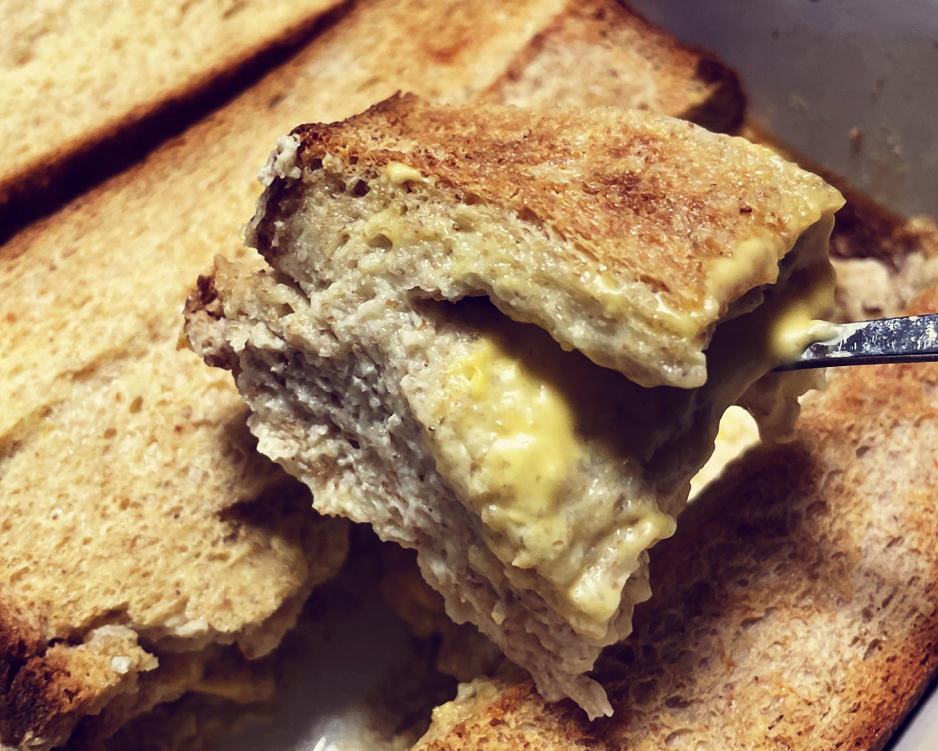 牛奶鸡蛋布丁烤流心芝士夹心吐司
